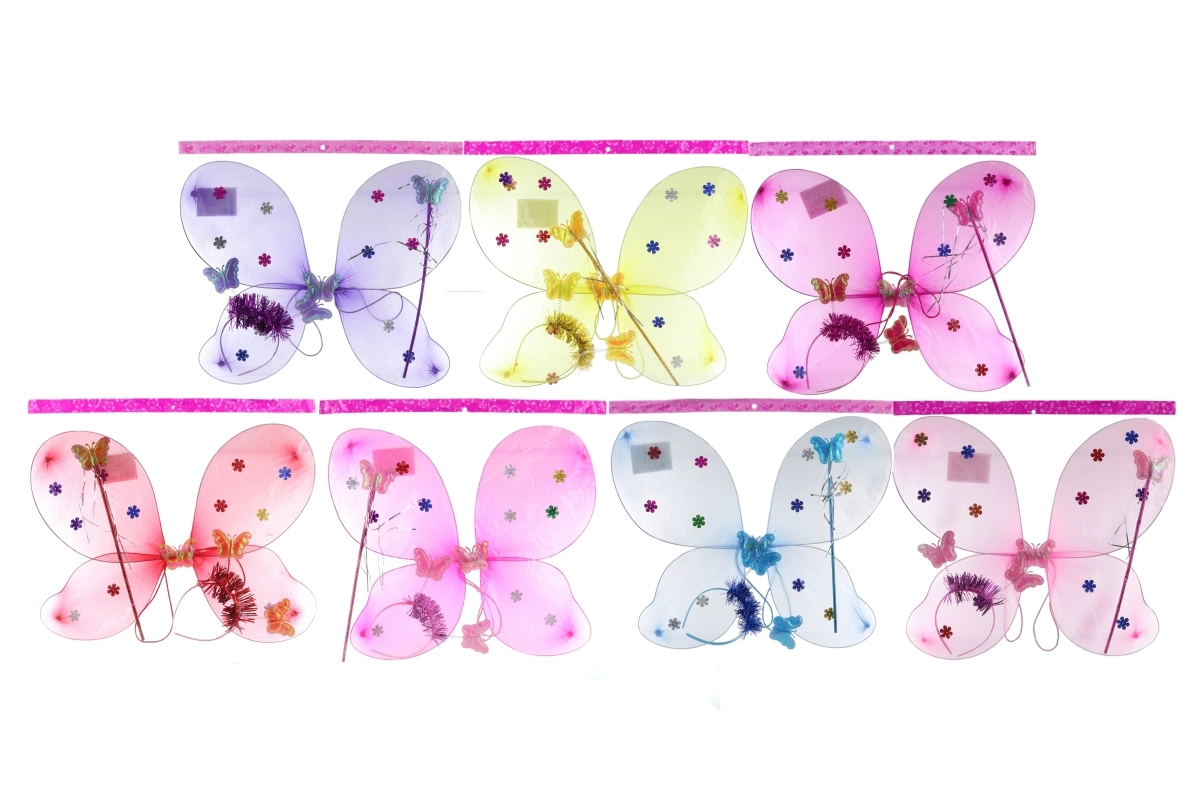 Transformă orice petrecere pentru copii într-un tărâm magic! Setul cu aripi de fluture decorate cu floricele va încânta orice mică zână. Datorită construcției ușoare și prinderii simple, aripile sunt confortabile chiar și la purtare prelungită. Setul include o bentiță asortată și o baghetă pentru și mai multă fantezie.