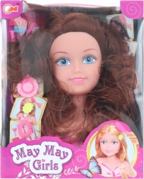 Acest cap de coafat pentru stilizare, cu păr castaniu ondulat, este o alegere excelentă pentru copiii care iubesc coafatul și machiajul. Datorită suportului stabil și părului sintetic de calitate, se poate exersa cu ușurință pieptănarea, împletirea și crearea de coafuri creative.