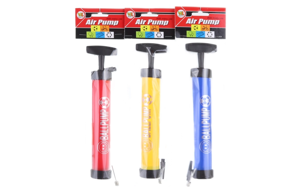 Pompă manuală practică, cu lungimea de aprox. 24 cm, pentru umflarea rapidă și comodă a echipamentelor sportive și de agrement. Include două accesorii pentru diferite tipuri de valve. Ușoară, compactă și universală, ideală pentru acasă, sport și călătorii.