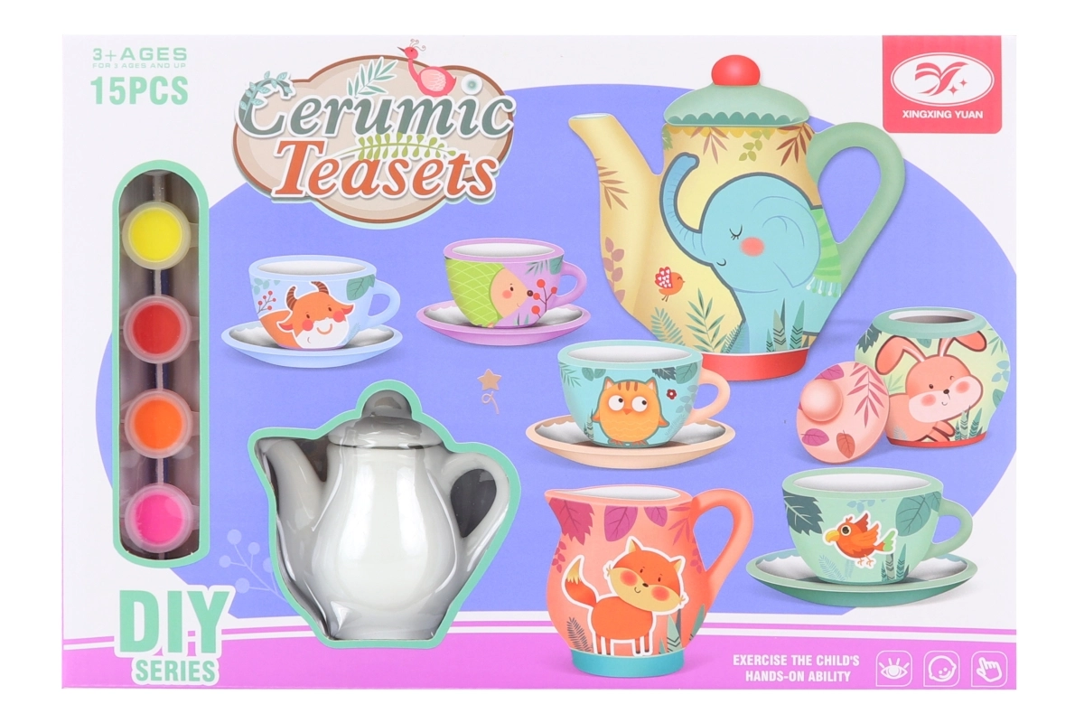 Setul creativ de pictat pentru ceai, dedicat micilor artiști, oferă ore de distracție și dezvoltare a imaginației. Copiii pot decora cu propriile culori ceainicul, ceșcuțele cu farfurioare, picurătorul de lapte și zaharnița. Sunt incluse și culorile și pensula, astfel încât puteți începe să creați imediat. Susține creativitatea, motricitatea fină și creația originală a copiilor.