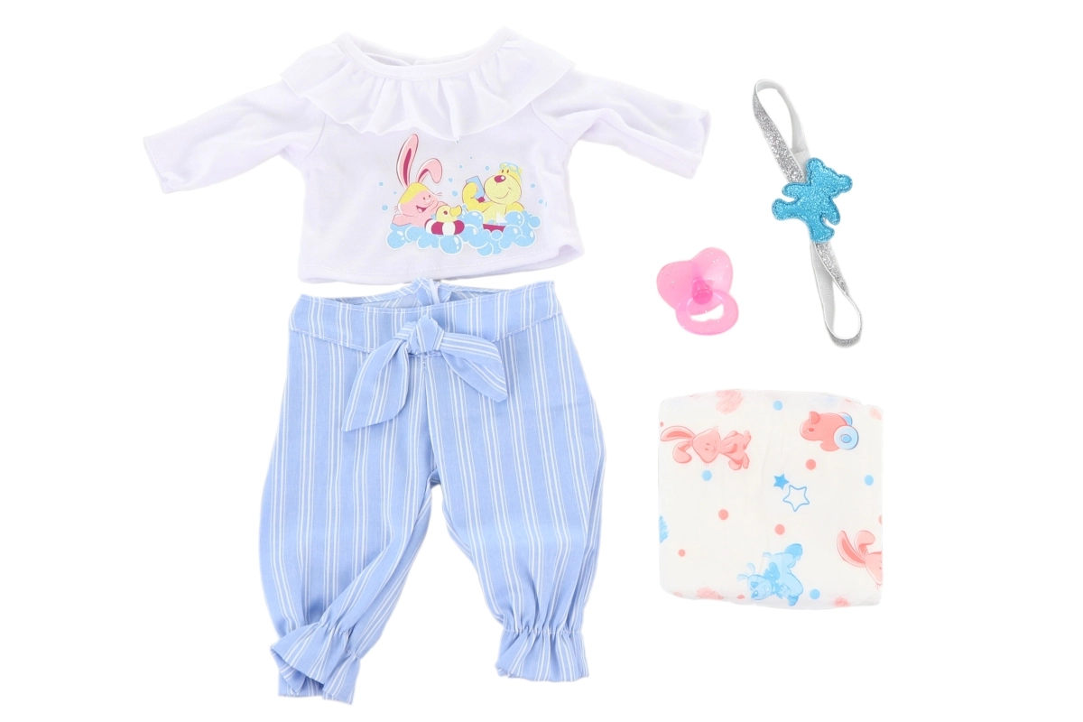 Oferă-i păpușii tale o ținută nouă și copiilor posibilități nesfârșite de joc. Hăinuța este concepută pentru păpuși cu înălțimea de aproximativ 45 cm și se potrivește majorității tipurilor obișnuite de păpuși de această mărime. Datorită croielii gândite cu atenție, îmbrăcarea este simplă chiar și pentru copiii mai mici.