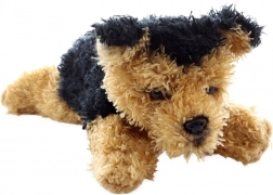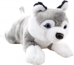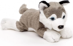 Acest câine de pluș culcat îi va încânta atât pe copii, cât și pe iubitorii de animale. Este realizat din material fin și plăcut, care îmbie la îmbrățișare și stimulează percepția senzorială. Datorită dimensiunii de 19 cm, este grozav pentru călătorii, pătuț sau cărucior.