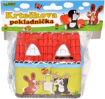 Pușculița Krtek căsuța este locul ideal pentru economiile copiilor. Această pușculiță din tablă cu Krtek ascunde în siguranță toate monedele datorită lacătului și cheilor, care trebuie bine ascunse.