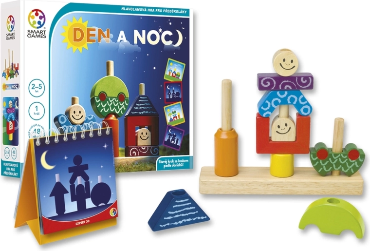 Zi și noapte este un joc logic inteligent conceput pentru un singur jucător, care îi ghidează pe copii de la primele puzzle-uri simple până la sarcini spațiale mai complexe. Pe cardurile de zi se văd toate detaliile, în timp ce cardurile de noapte arată doar contururi – astfel copilul își antrenează imaginația, atenția și motricitatea fină.