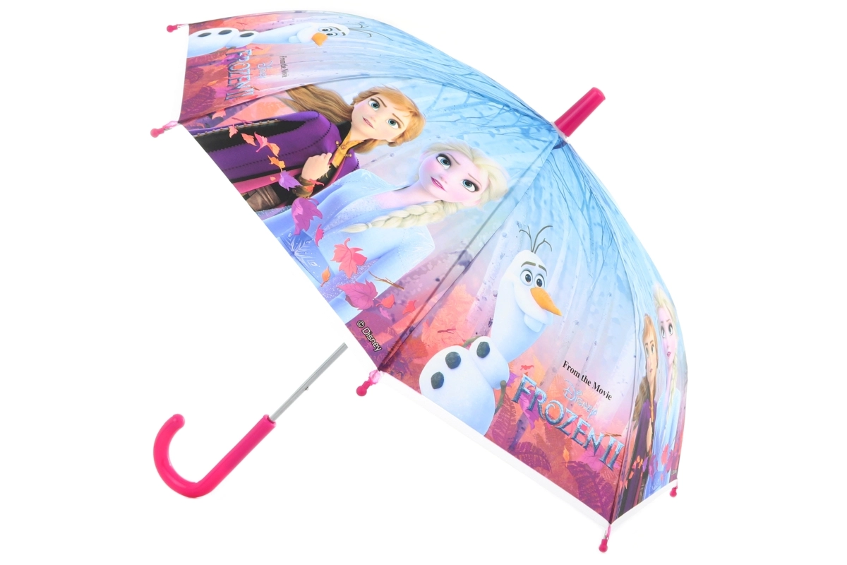 Umbrelă manuală cu motive Frozen. Dimensiunile umbrelei deschise sunt aprox. 64 x 64 x 60 cm. Dimensiunile ambalajului sunt aprox. 60 x 8,5 x 4 cm. Ambalată într-o pungă de plastic.