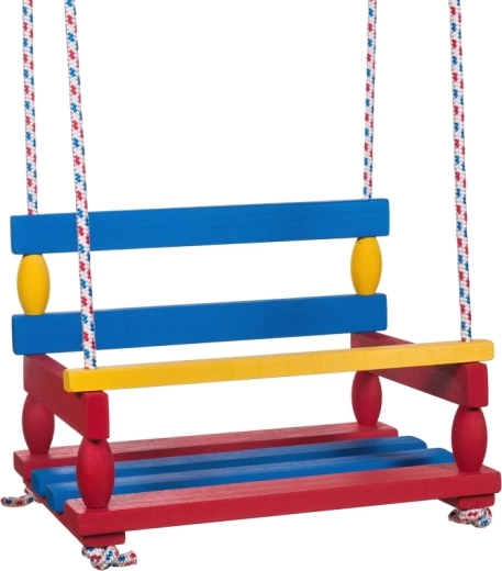 Lemnul robust și frânghiile rezistente asigură stabilitate ridicată pentru copii și adulți.