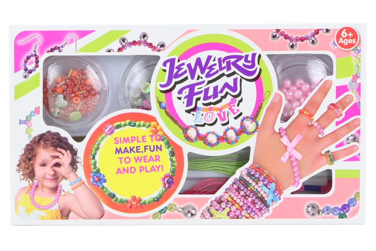 Acest set este o alegere grozavă pentru micii creatori de bijuterii care adoră să realizeze accesorii colorate și originale. Datorită mărgelelor variate și celor două fire de bumbac, copiii pot combina culori, modele și pot învăța tehnici de bază de înșirat.