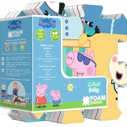 Puzzle-urile din spumă cu îndrăgitele motive din povestea PEPPA PIG îi vor încânta atât pe micii fani, cât și pe părinți. Piesele sunt fabricate dintr-un material special multistrat, similar unei saltele groase de camping, nu din spumă EVA clasică, ondulată. Datorită grosimii peste standard de 1,5 cm, amortizează șocurile și oferă un loc confortabil și sigur pentru joacă.
