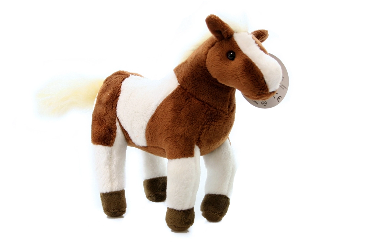 Acest căluț de pluș maro-alb, cu model pătat și coamă albă, este un companion perfect pentru copii și colecționarii de plușuri. Datorită materialului moale, este plăcut la atingere și sigur pentru bebeluși de la 0+. Execuția în poziție verticală oferă jucăriei un aspect realist și facilitează expunerea pe raft.
