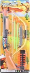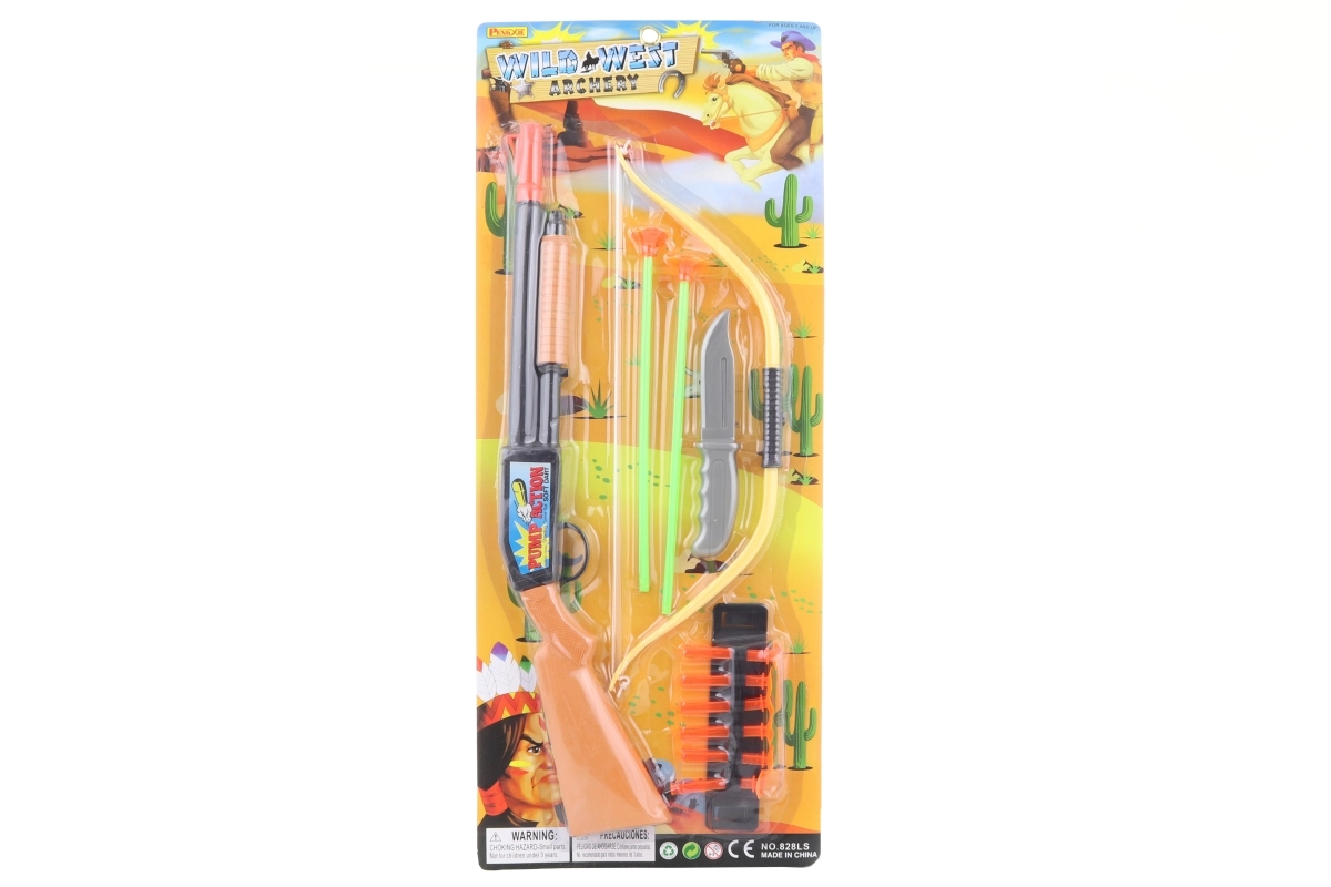 Acest set western oferă copiilor ore de distracție creativă și jocuri de acțiune în siguranță. Datorită săgeților cu ventuză, micii trăgători își pot exersa precizia fără risc de rănire, în timp ce arcul cu două săgeți dezvoltă coordonarea și concentrarea. Cuțitașul ușor din plastic completează echiparea pentru jocuri tematice atât în interior, cât și în exterior.