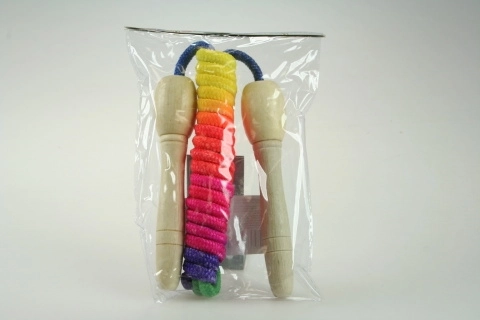 Coardă de sărit 2 m din lemn dungi. Vârsta 3+
