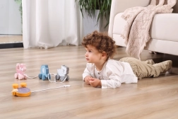 Jucăria de tras este ușoară, ușor de apucat și sigură – are margini netede și un finisaj de calitate. Se potrivește perfect pentru acasă și pentru plimbări prin locuință. Dimensiunea compactă facilitează depozitarea și transportul.