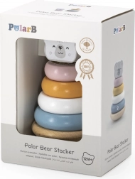 Piramida educativă din lemn cu motiv de Urs polar este jucăria ideală pentru cei mai mici. Această piramidă este dotată cu șase inele de diferite dimensiuni și culori, inclusiv unul principal cu cap de urs. Datorită construcției durabile din lemn, jucăria nu este doar sigură, ci și rezistentă.