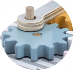 Cu diverse moduri de aranjare a roților dințate, copiii își pot dezvolta creativitatea și imaginația.