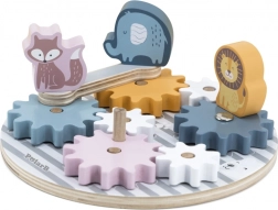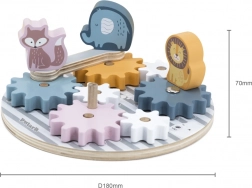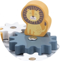 Încurajați distracția și dezvoltarea cu cuburile noastre din lemn cu roți dințate, unde mecanica devine joc. Setul include 7 piese colorate cu roți dințate, 3 figurine amuzante cu animăluțe și o bază pe care puteți așeza roțile astfel încât una să le miște pe celelalte.