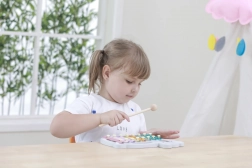 Opt clape pastel îi motivează pe cei mici să descopere tonuri, ritm și melodii simple. Perfect pentru dezvoltarea percepției auditive și a creativității.
