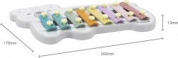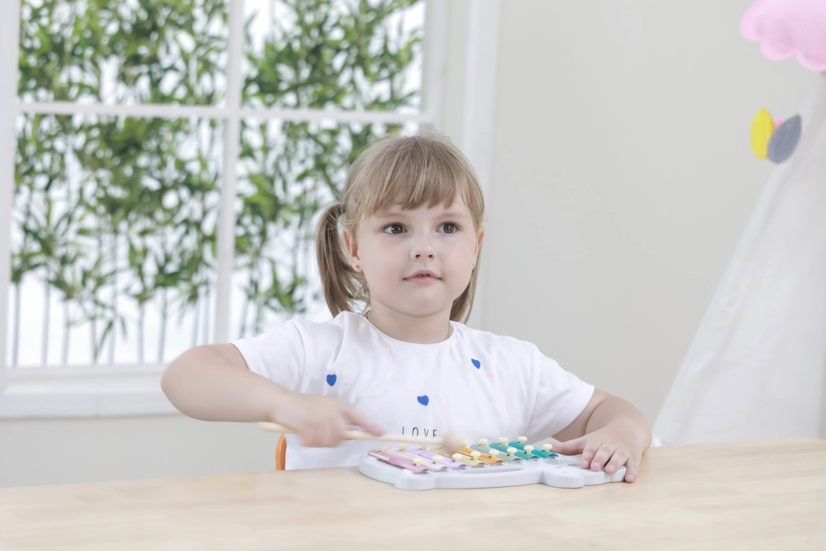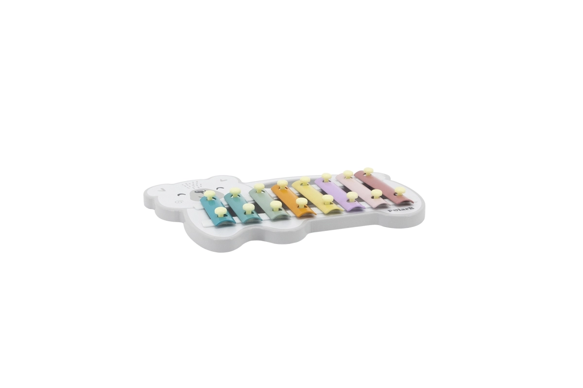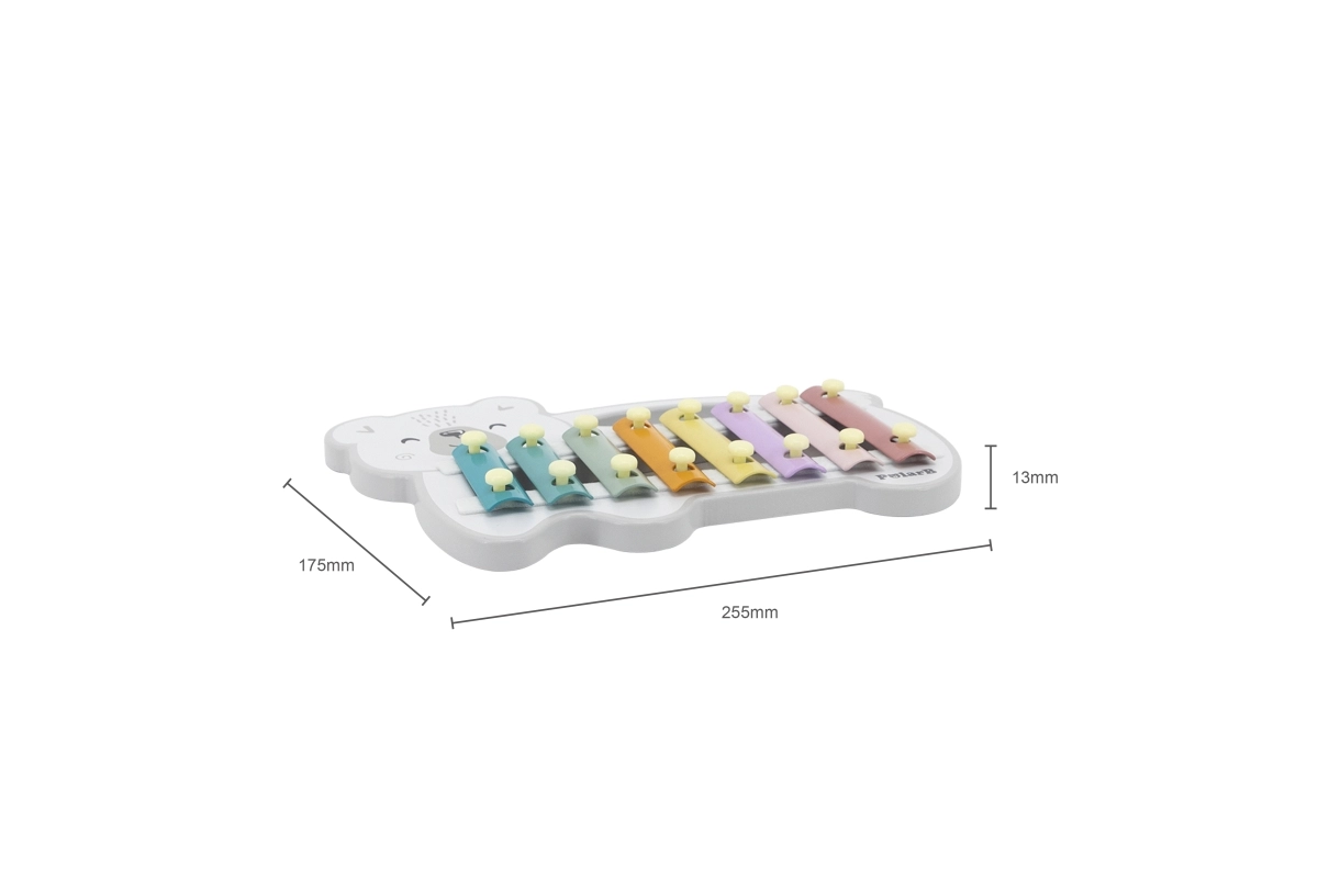 Construcția durabilă, marginile rotunjite și dimensiunile compacte asigură o utilizare sigură și confortabilă chiar și pentru cei mai mici. Xilofonul este o alegere excelentă pentru dezvoltarea simțului muzical, a concentrării și a răbdării.