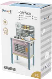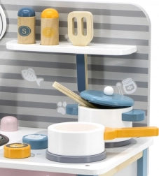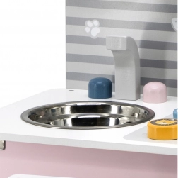 Realizată cu un design de înaltă calitate, bucătăria este echipată cu aragaz, cuptor și chiuvetă, creând un spațiu perfect pentru jocul imaginativ. Elemente precum cârligele suspendate și polițele pentru ustensilele de bucătărie adaugă autenticitate jocului.