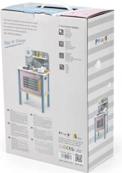 Transformați jocul copiilor cu această atractivă bucătărie din lemn. Destinată tinerilor bucătari și bucătărese, această bucătărie le oferă copiilor posibilitatea de a simula gătitul și coacerea datorită elementelor sale realiste.