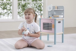 Cu funcții precum aragaz, cuptor și chiuvetă, această bucătărie este ideală pentru o gamă largă de activități de joc, care stimulează creativitatea copiilor.