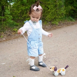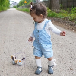 Cățelușul de tras îi motivează pe copii să meargă, întărește coordonarea și îi ajută să își mențină echilibrul. Datorită șnurului confortabil, plimbarea este firească și distractivă.