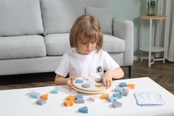 Descoperiți un joc distractiv și educativ prin care copiii își însușesc în mod natural recunoașterea formelor și culorilor. Placa rotativă permite schimbarea modelelor colorate, astfel încât jocul rămâne mereu atractiv și variat. Cardurile cu modele îi ghidează pe copii pas cu pas și le dezvoltă logica, concentrarea și coordonarea mână–ochi.