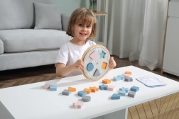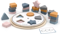 Copiii asociază piesele din lemn cu decupajele de pe placă și în mod natural își însușesc culorile și formele de bază – cerc, pătrat, triunghi sau stea.