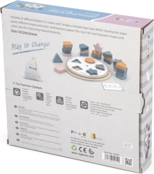 Prin rotirea părții superioare a plăcii schimbați modelele colorate, iar cu cardurile cu modele apar sarcini noi care susțin concentrarea și logica.