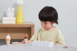 Acest set este un accesoriu grozav pentru bucătărioara copiilor sau pentru joaca de magazin. Dezvoltă motricitatea fină, coordonarea, vocabularul și interacțiunea socială în timpul jocului împreună. Datorită execuției rezistente, suportă utilizarea zilnică și, în același timp, înfrumusețează interiorul.