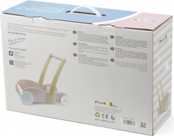 Lemnul solid și ecartamentul larg al roților oferă stabilitate excelentă și siguranță la învățarea mersului.