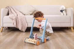 Mersul din lemn cu animăluțe este un ajutor grozav pentru primii pași ai copilului. Construcția robustă oferă siguranță și stabilitate, iar mânerul ergonomic facilitează prinderea sigură. Mersul poate fi împins înainte și înapoi, adaptându-se ritmului și abilităților micilor exploratori.