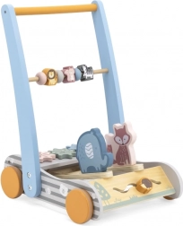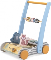 Elementele interactive, vulpea și elefantul, care se leagănă și produc sunete în mers, trezesc curiozitatea și dezvoltă auzul. Culorile vesele și motivele cu animale ajută la recunoașterea culorilor și formelor, în timp ce mersul cu acest dispozitiv întărește motricitatea grosieră și coordonarea.
