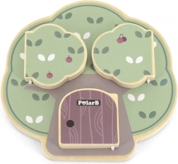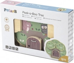 Jocul din lemn Peek‑a‑Boo copac de la POLARB este conceput pentru descoperiri jucăușe. Copiii glisează și rotesc piesele, bat la ușițe și găsesc simpaticii locuitori ai copacului – bufnița, veverița sau ariciul. Acest joc interactiv dezvoltă natural coordonarea mână‑ochi și stimulează curiozitatea.