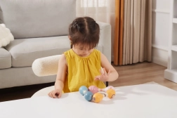 Acestă zornăitoare stilată și sigură, în formă de maracas dublu, este realizată din lemn de calitate și concepută pentru a produce un sunet delicat și liniștitor, plăcut pentru urechile copiilor. Greutatea redusă îi motivează pe copii să o prindă și să o scuture des, dezvoltând în mod natural motricitatea fină, ritmul și coordonarea.