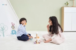 Elegantul suport pe două niveluri găzduiește toate prăjiturelele și creează o scenă realistă pentru ceaiul de după-amiază. Copiii își exersează cu ușurință motricitatea fină prin aranjare.