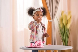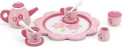 Setul conține tot ce este necesar pentru a juca petreceri de ceai: ceainic, ulcică, zaharniță, cești, farfurioare, lingurițe și tăviță.