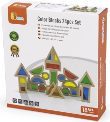 Cu acest set de cuburi din lemn, copiii descoperă lumea culorilor și formelor. Fiecare cub este conceput pentru a susține imaginația și a învăța copiii abilități noi. Cu această jucărie, copiii pot construi diverse structuri și exersa abilități matematice de bază.