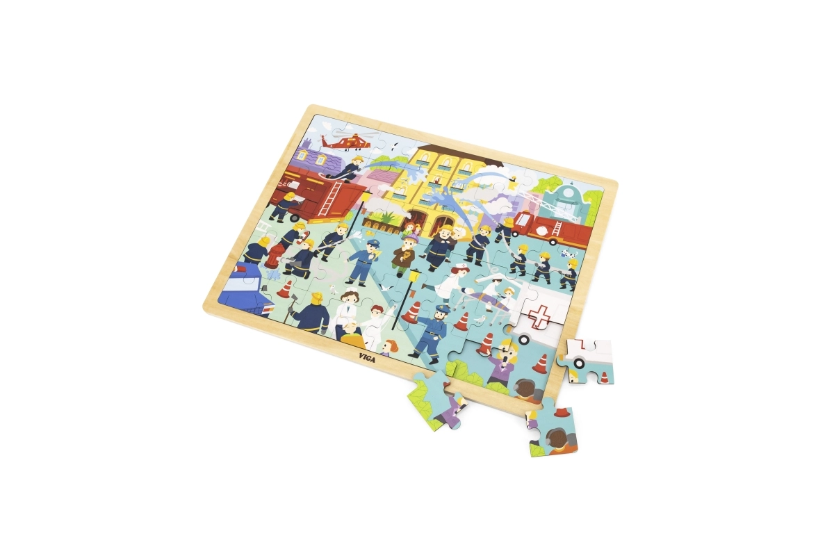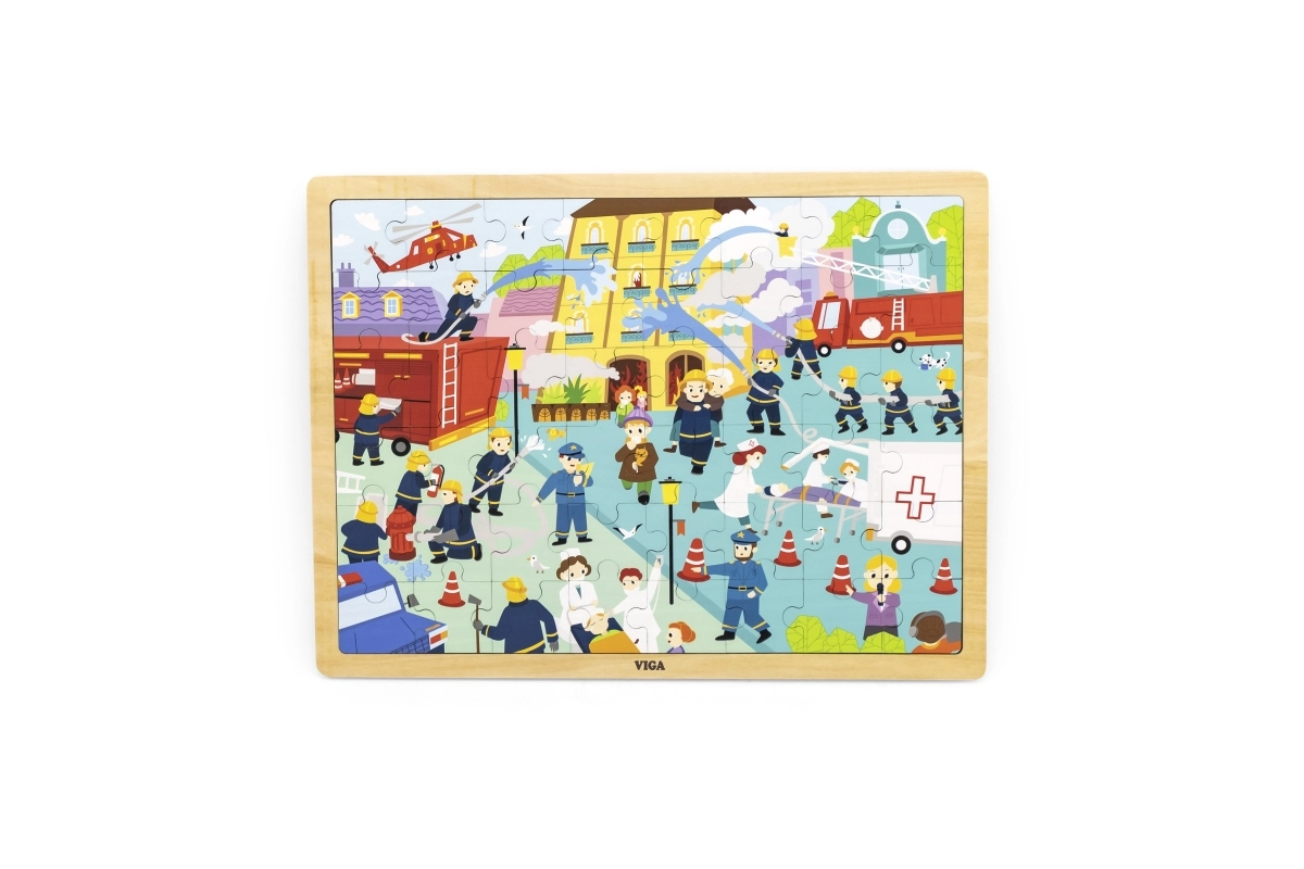 Acest puzzle din lemn de calitate, cu o imagine colorată a pompierilor, este excelent pentru primele încercări de asamblare și pentru dezvoltarea abilităților preșcolarilor. Piesele sunt solide, plăcute la atingere și se așază într-o tăviță stabilă din lemn, care ușurează manipularea și depozitarea.