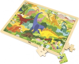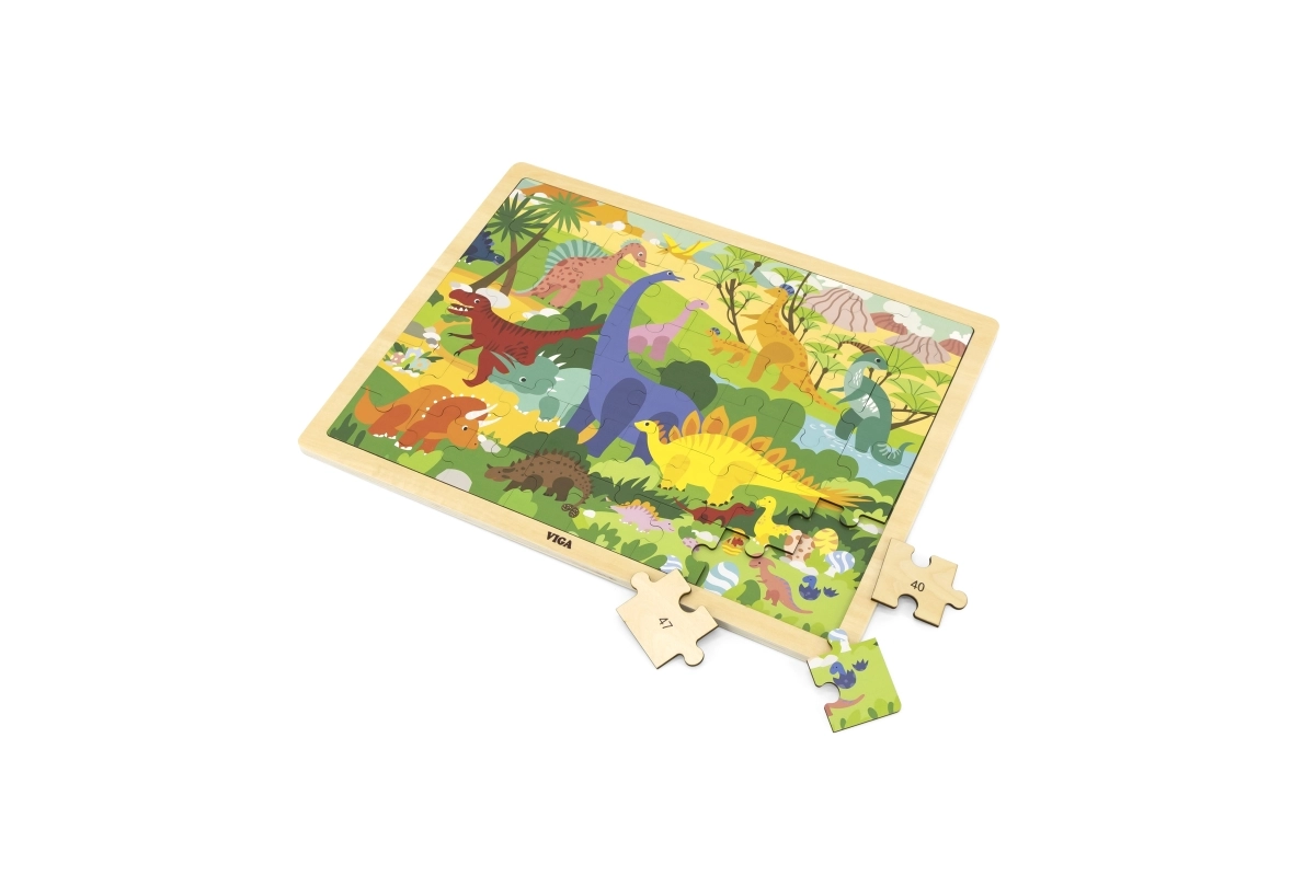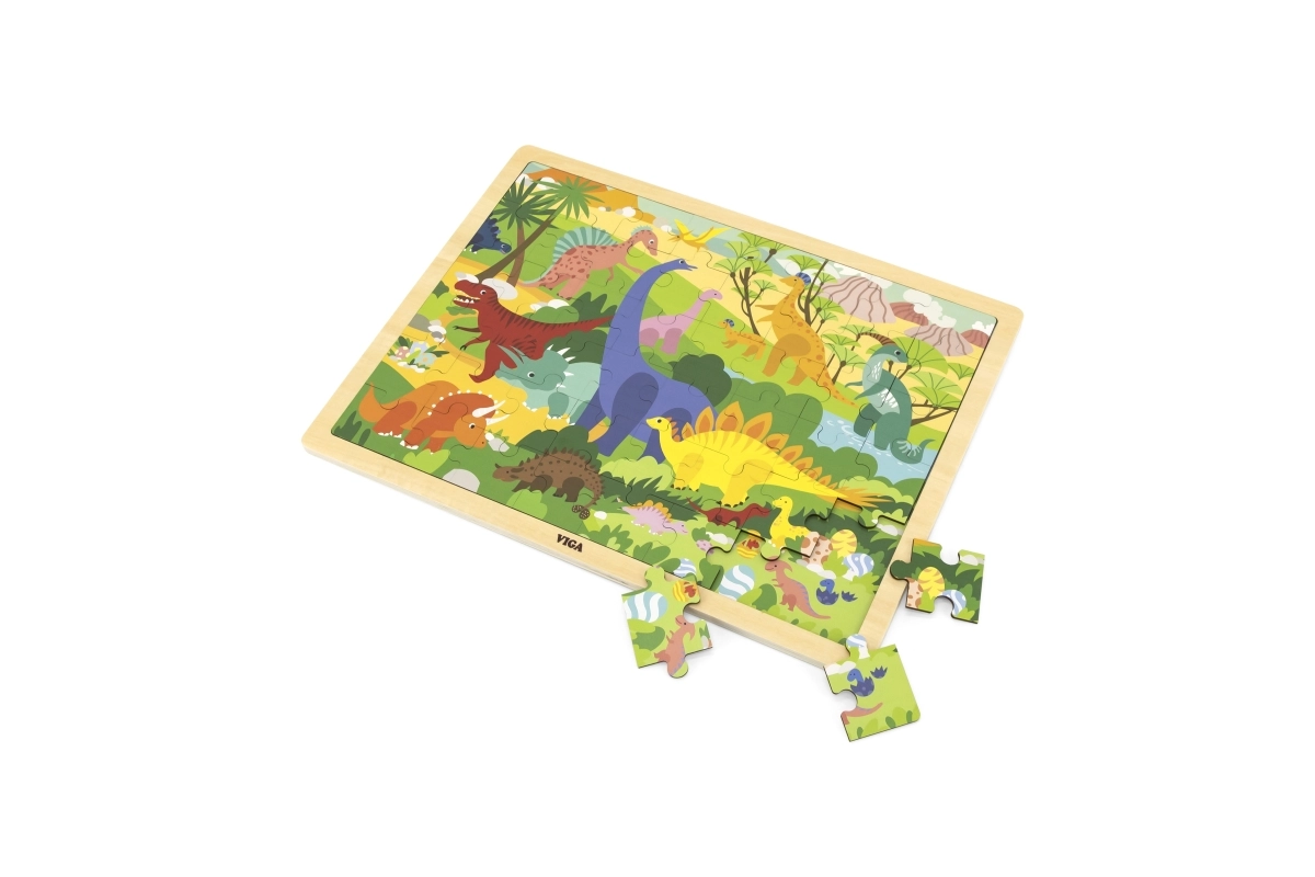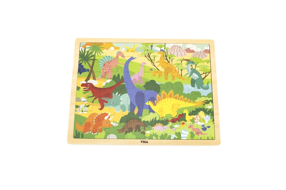Oferiți-le copiilor o activitate distractivă și educativă cu puzzle-ul din lemn cu tematică de dinozauri. Datorită celor 48 de piese, este ideal ca primul „puzzle mai mare”, care dezvoltă treptat abilitățile și încrederea micilor constructori. Piesele sunt rezistente, se prind bine în mână și pot fi așezate comod pe placa din lemn cu ramă.