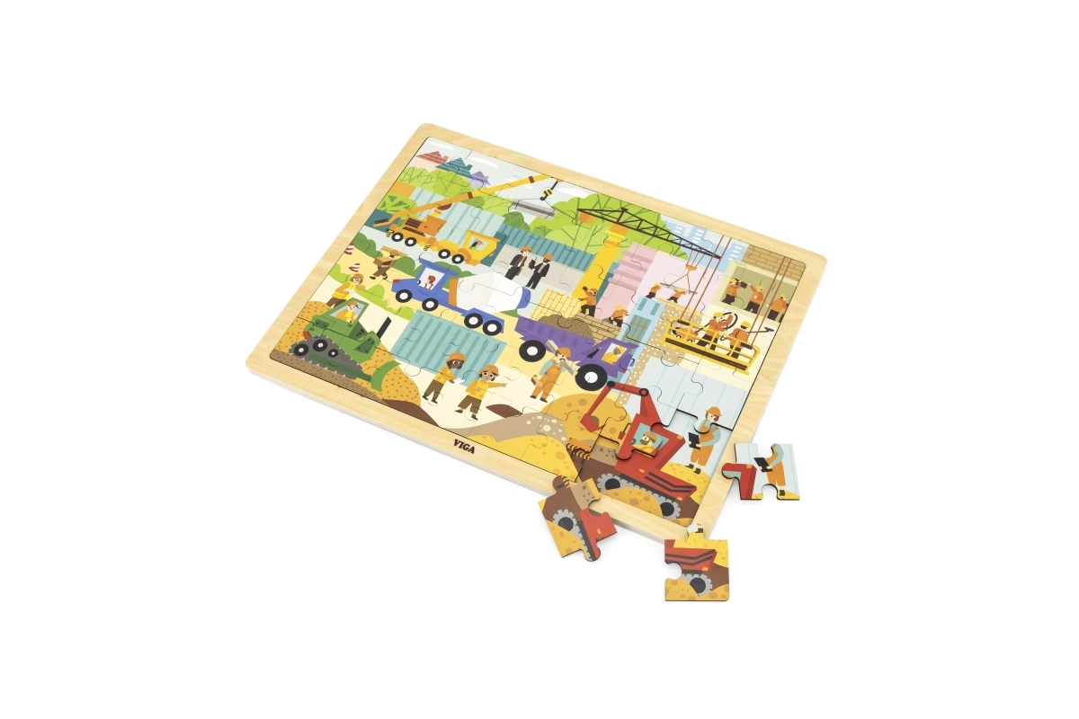Acest puzzle din lemn de calitate, cu temă de șantier, este alegerea ideală pentru primele puzzle-uri mai mari. Datorită celor 48 de piese tăiate cu precizie, copiii își exersează coordonarea mână–ochi și învață să recunoască formele și culorile. Suportul din lemn solid menține imaginea întreagă și facilitează manipularea.