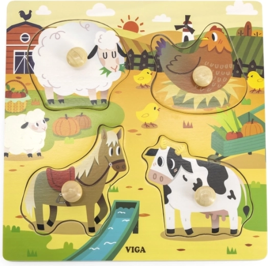 Acest puzzle din lemn este alegerea perfectă pentru părinții care doresc să susțină dezvoltarea abilităților motorii ale copilului lor. Oferă ilustrații frumoase cu animale de fermă – oi, găini, cai și vaci. Fiecare piesă este dotată cu un buton practic care permite prinderea și manipularea ușoară pentru mânuțe mai mici. Puzzle-ul este conceput cu atenție la siguranță și durabilitate, fiind ideal pentru copiii de la 12 luni.