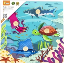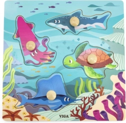 Puzzle-ul din lemn cu tema animalelor marine de la brandul renumit Viga oferă o opțiune distractivă și educativă pentru copii, pentru a dezvolta precizia mișcărilor mâinilor și recunoașterea formelor. Jucăria este adecvată pentru copiii de la 12 luni și ajută la îmbunătățirea coordonării și memoriei.