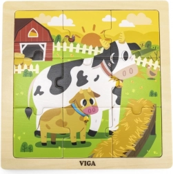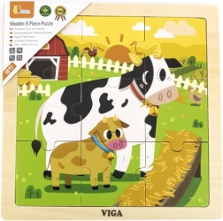 Puzzle din lemn cu 9 piese, cu imagine cu văcuțe. Dimensiunea plăcii din lemn aprox. 22 x 22 x 1 cm. Dimensiunea ambalajului aprox. 22 x 22 x 1 cm. Vârsta 18m+