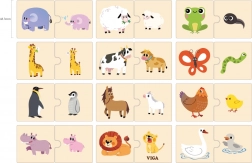 Copiii formează perechile corecte de animale și învață natural noțiuni noi, consolidând logica și capacitatea de concentrare.