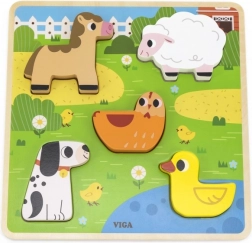 VIGA folosește lemn de calitate și suprafețe netede pentru joacă în siguranță. Piesele groase se prind bine, fiind perfecte pentru mâinile mici ale copiilor. Puzzle-ul susține autonomia, concentrarea și jocul creativ.