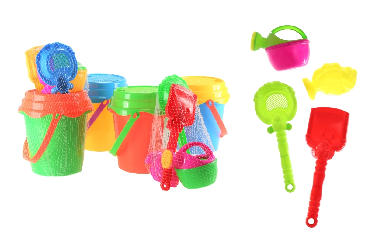 Acest set colorat pentru nisip stimulează creativitatea, motricitatea fină și jocul în aer liber. Datorită pieselor din plastic ușoare și rezistente, este ideal pentru plajă, la iaz sau în groapa cu nisip din curte. Totul este organizat în plasa practică pentru transport și depozitare ușoare.