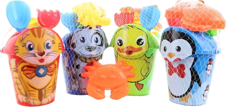 Acest set colorat pentru nisip susține creativitatea, motricitatea fină și jocul împreună în aer liber. Construcția robustă din plastic este concepută pentru utilizare zilnică pe plajă și în locul de joacă, iar capacul găleții funcționează ca sită practică pentru cernerea nisipului.