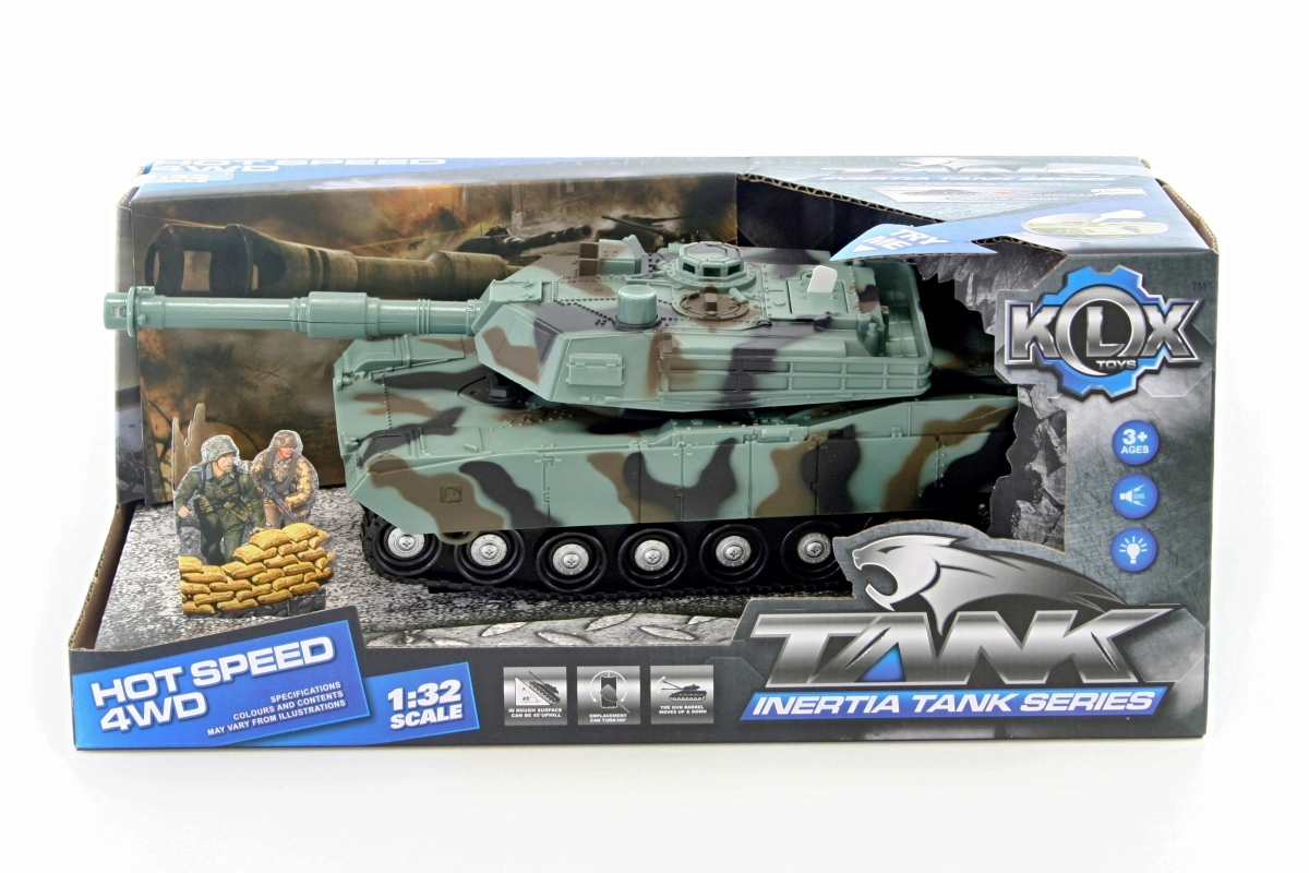 Descoperă distracția plină de acțiune cu tancul pentru copii în variantă cu camuflaj închis. Efectele realiste sunt asigurate de efecte sonore de împușcături și tun luminat la apăsarea unui buton. Datorită mecanismului cu inerție, tancul pornește ușor pe suprafețe plane fără a fi nevoie de telecomandă.