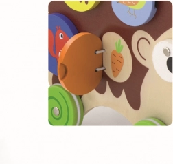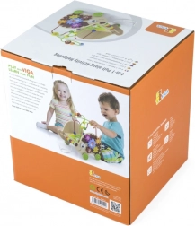 Numărat, labirint glisant cu animăluțe, labirint cu biluțe, roți dințate și elemente educative rotative – toate într-o singură jucărie, pentru ore întregi de descoperire.