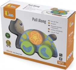Culorile vesele, expresia prietenoasă a țestoasei și ușurința cu care se trage pe podea transformă fiecare plimbare într-o aventură jucăușă.